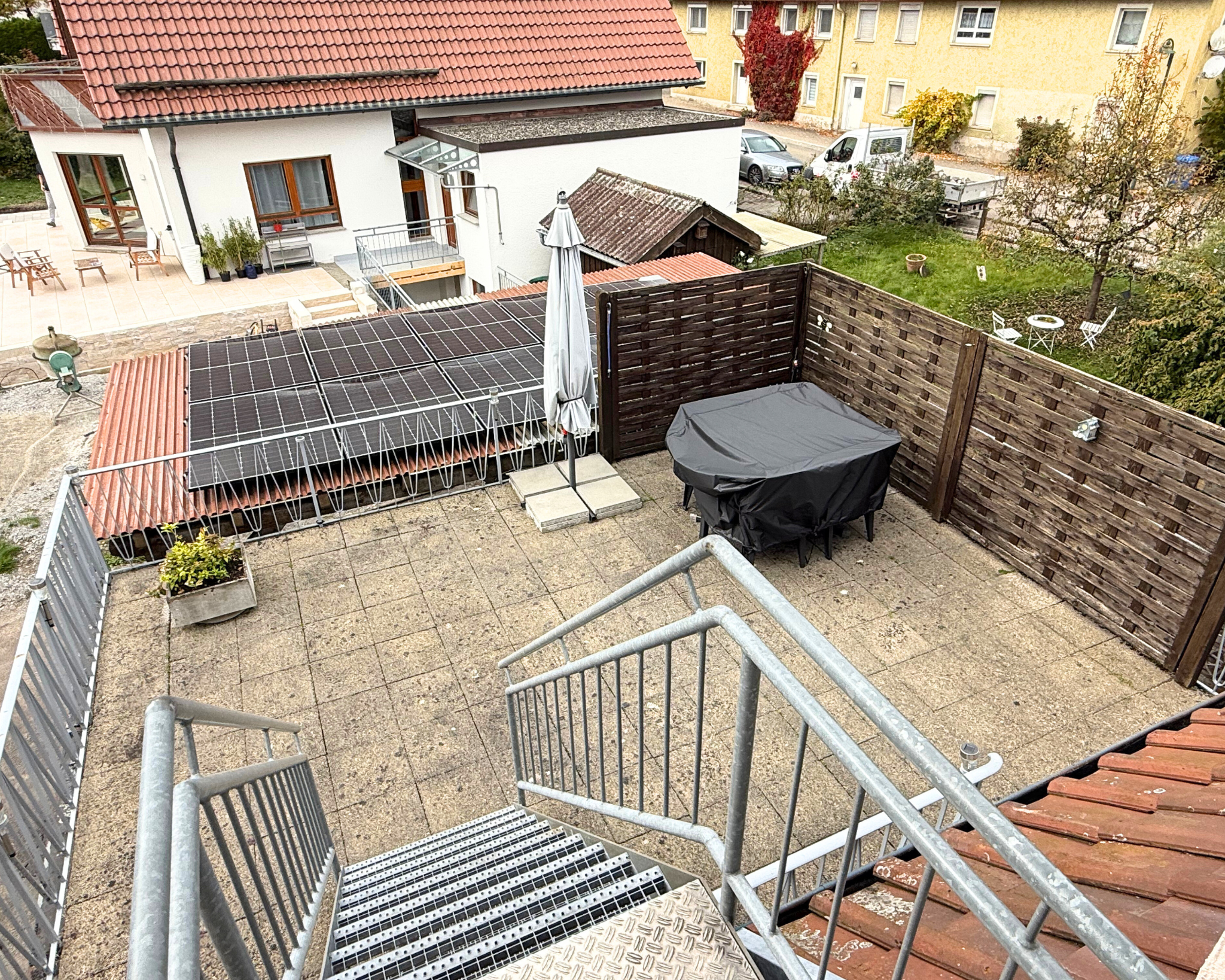 Beide Wohnungen verfügen über einen direkten Zugang zur großen Terrasse, die viel Platz zum Entspannen oder geselligen Beisammensein bietet.