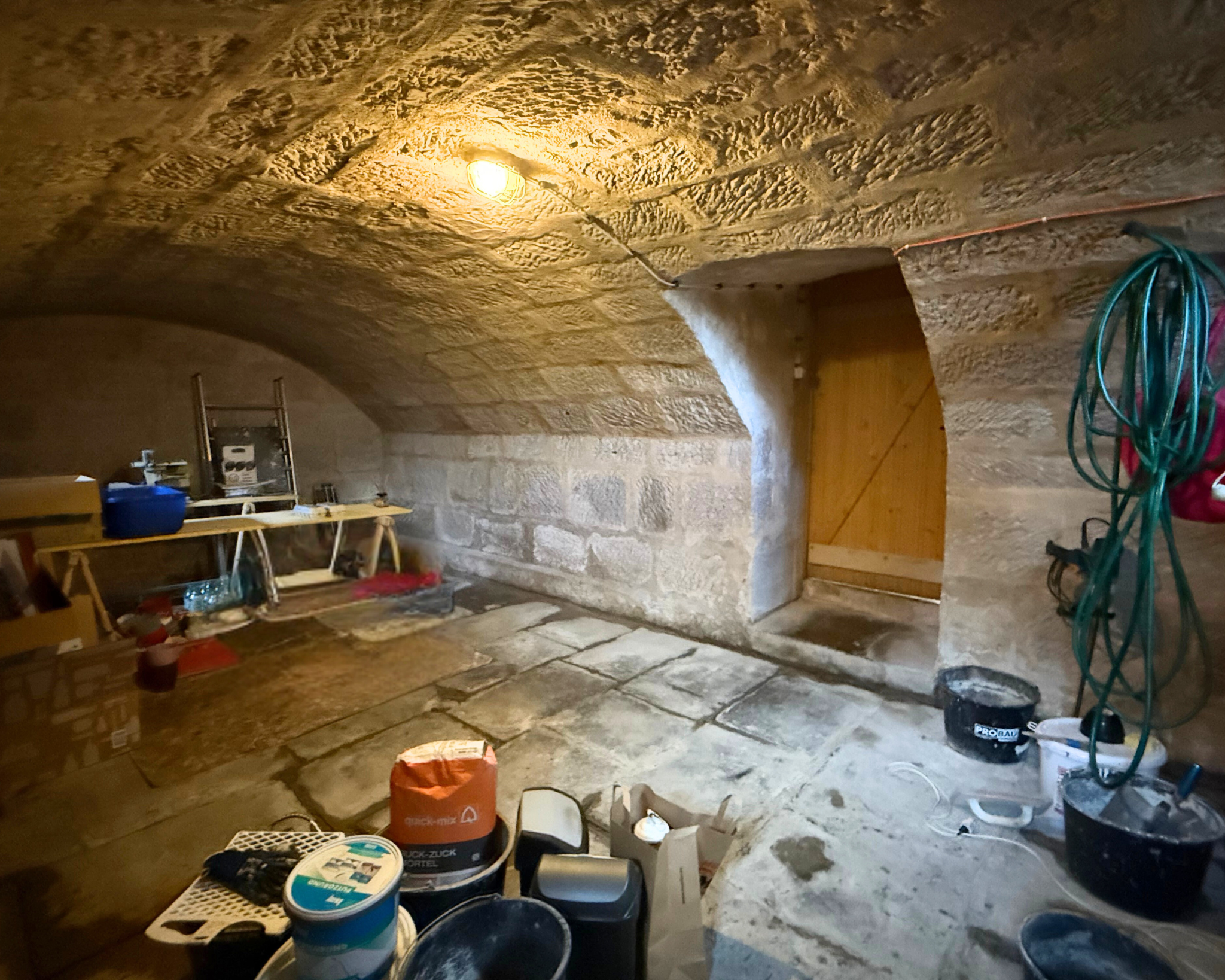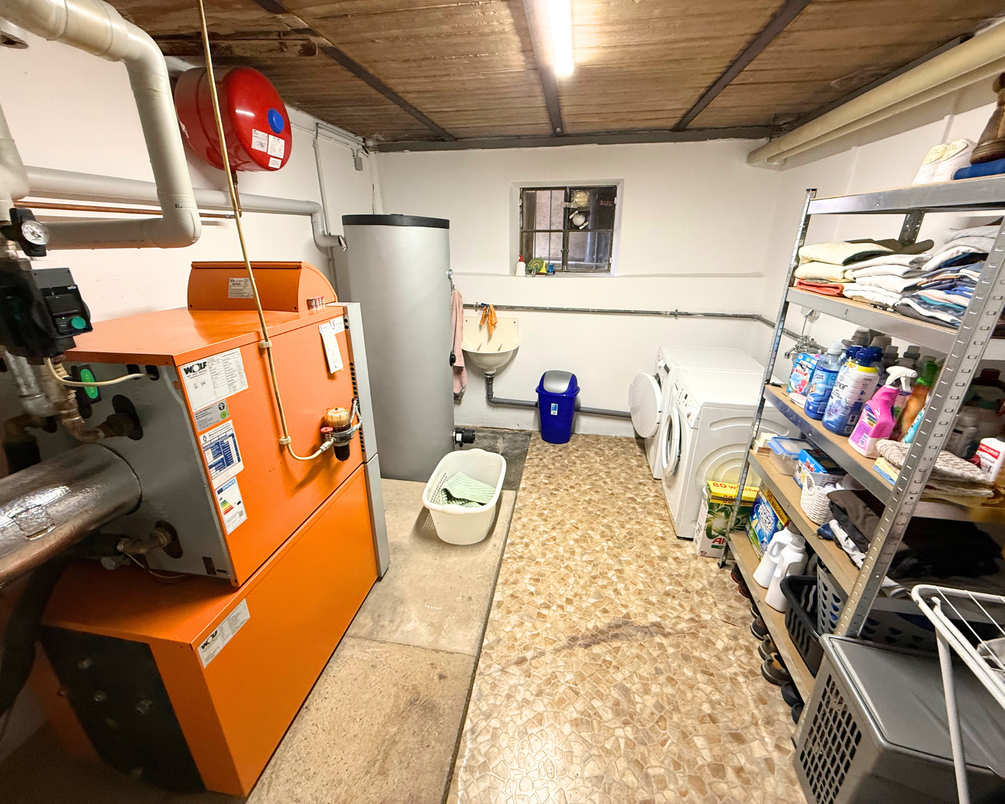 Im Kellerbereich steht viel Stauraum zur Verfügung. Die Räume wurden ebenfalls renoviert und beinhalten einen beeindruckenden Gewölbekeller, der sich vielseitig nutzen lässt. Die Decke zwischen OG und DG wurde zusätzlich isoliert, was die Energieeffizienz weiter verbessert.