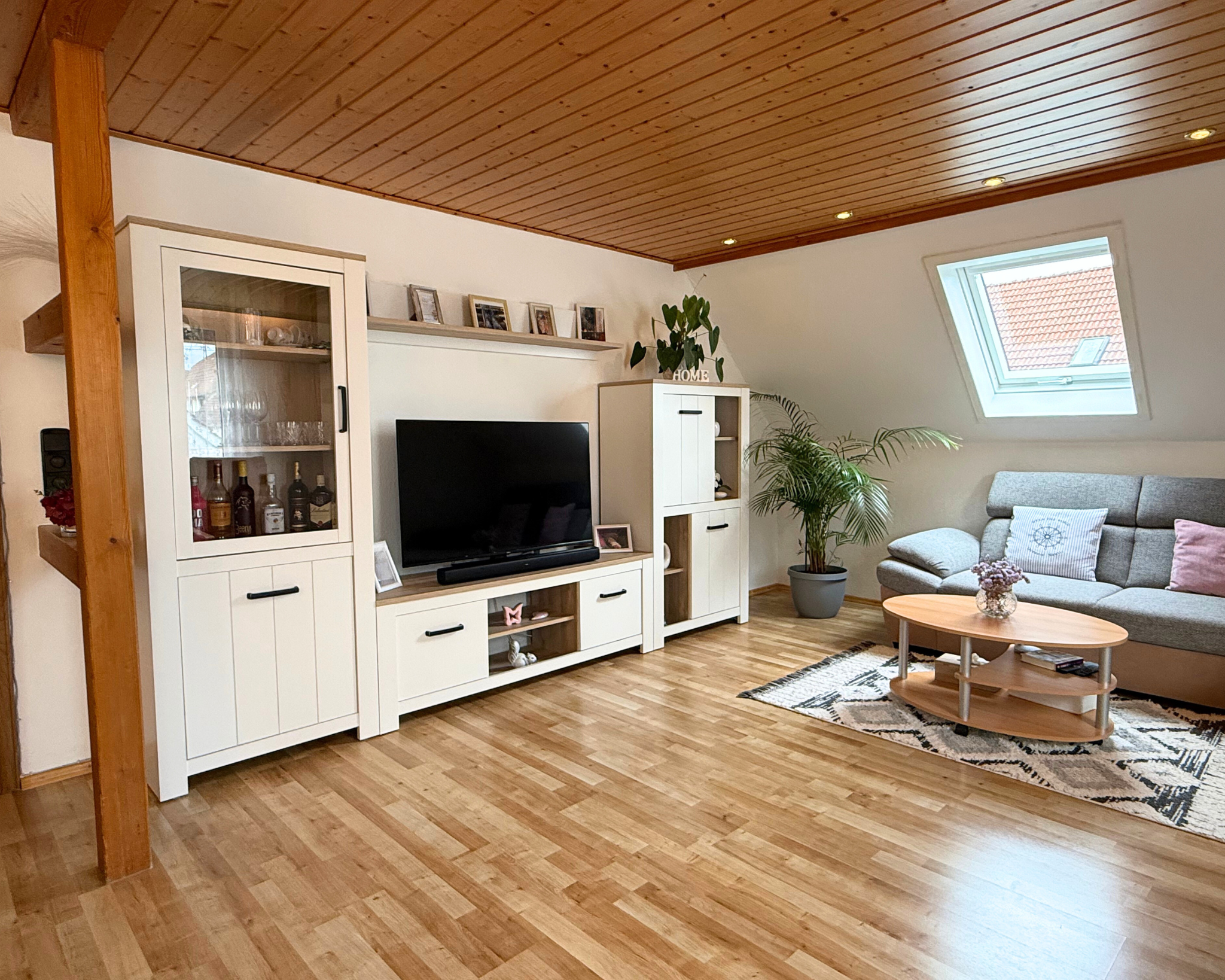 Die 4-Zimmer-Obergeschoss-/Dachwohnung besticht durch helle Räume mit nur wenigen Dachschrägen sowie ebenfalls eine moderne Einbauküche mit hochwertigen Geräten.