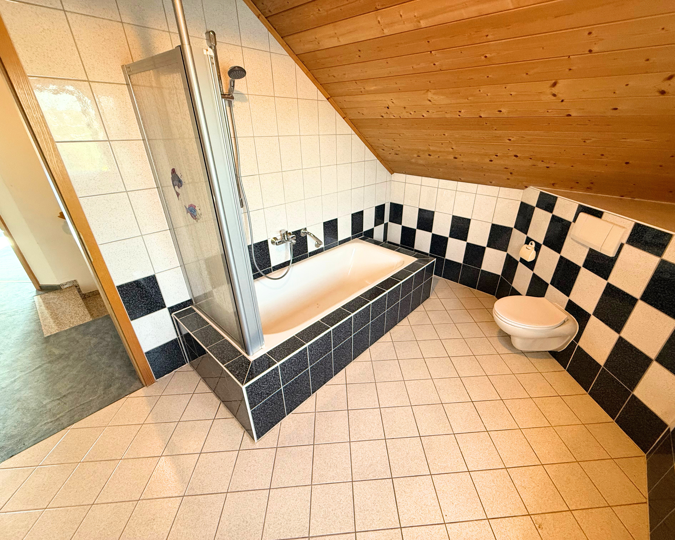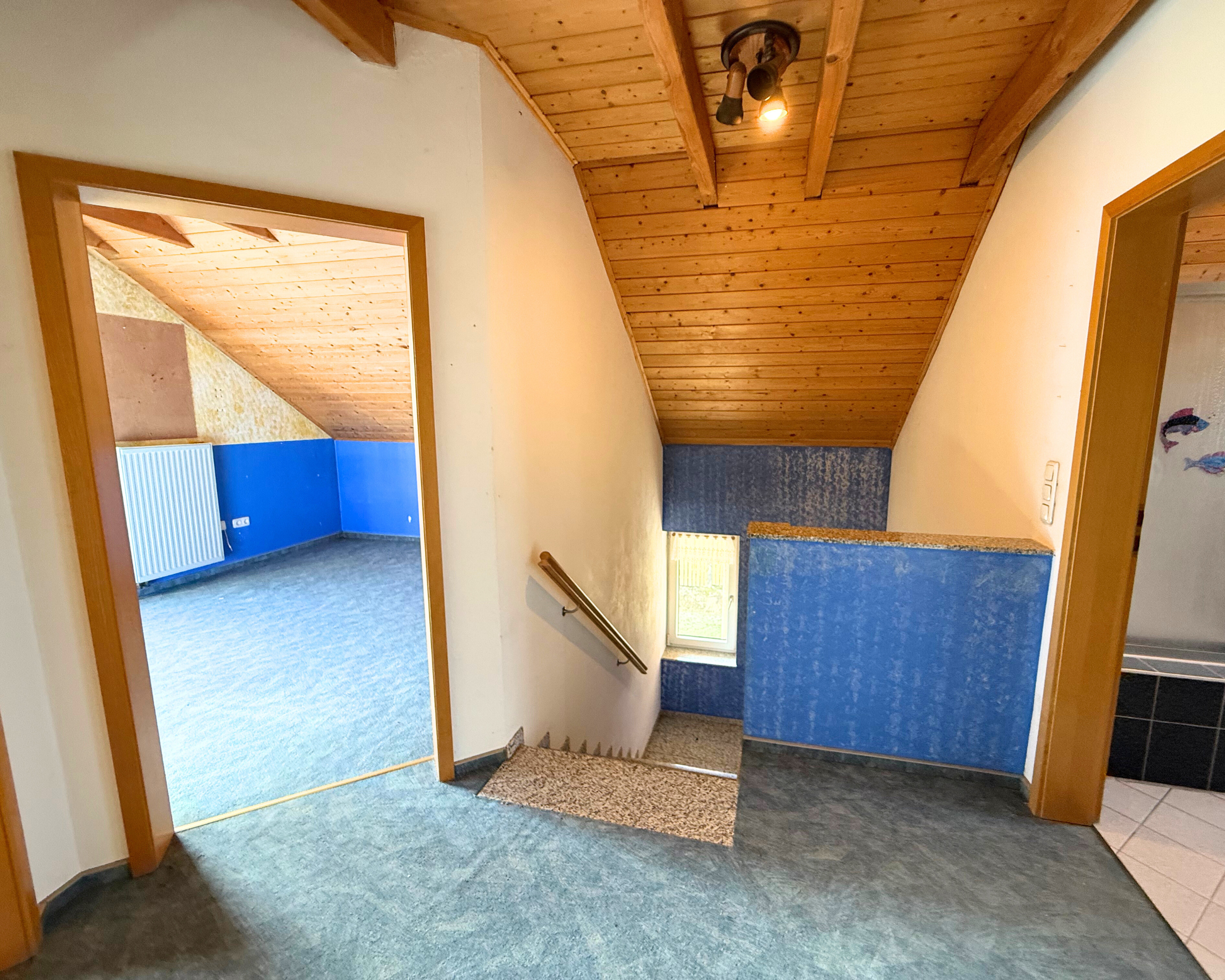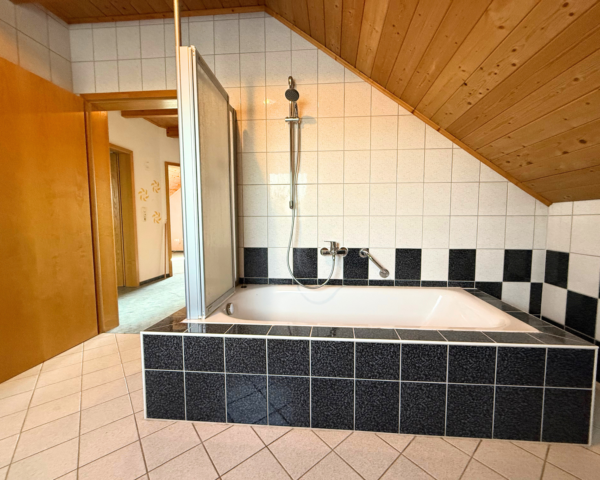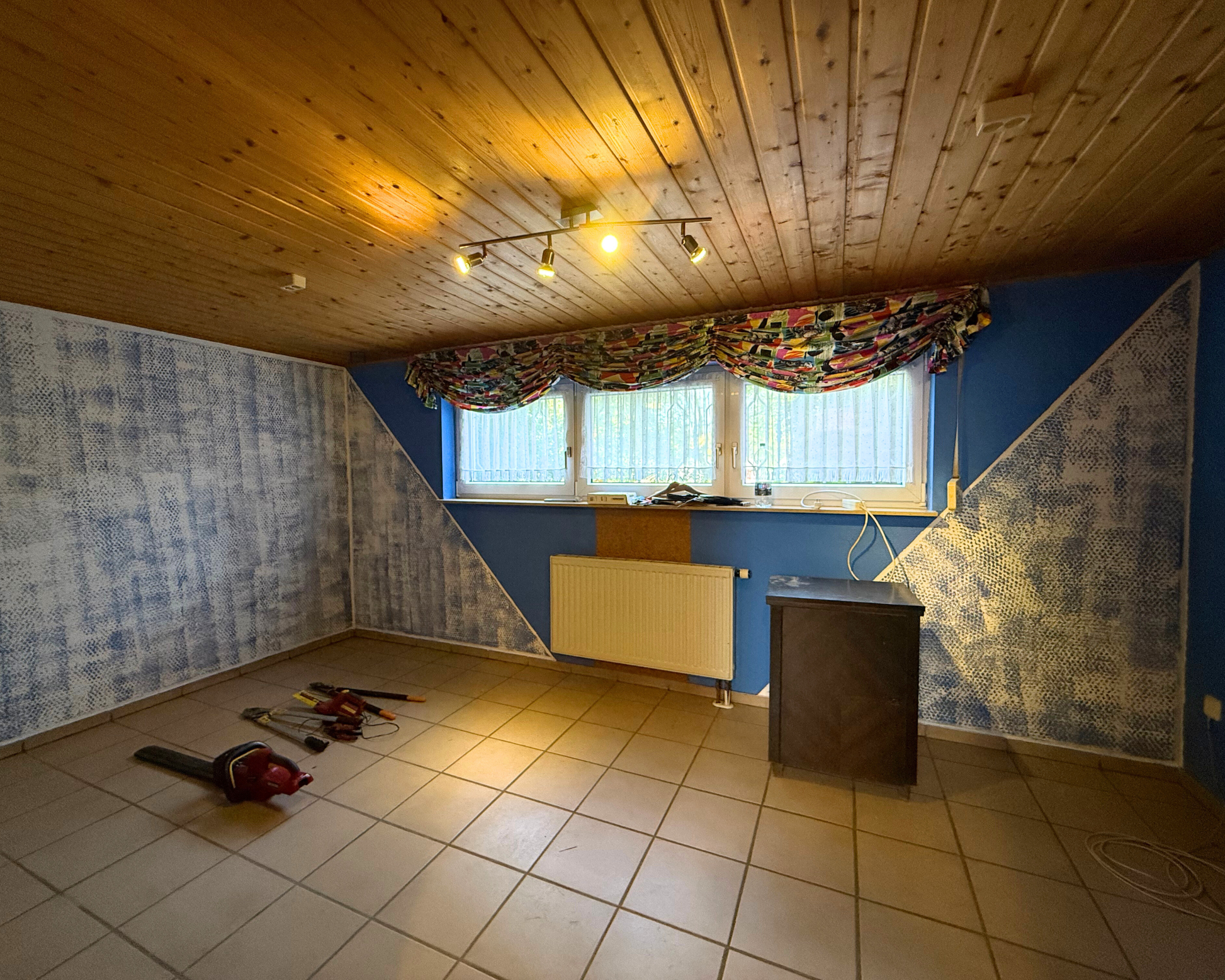 Im Inneren erwarten Sie 6,5 Zimmer, darunter drei Schlafzimmer, ein Hobbyraum und ein helles Badezimmer mit Badewanne und Fenster sowie ein praktisches Gäste-WC. Die Räume sind hell und freundlich gestaltet – ideal für Familien oder Paare, die sich ihren eigenen Wohntraum verwirklichen möchten.