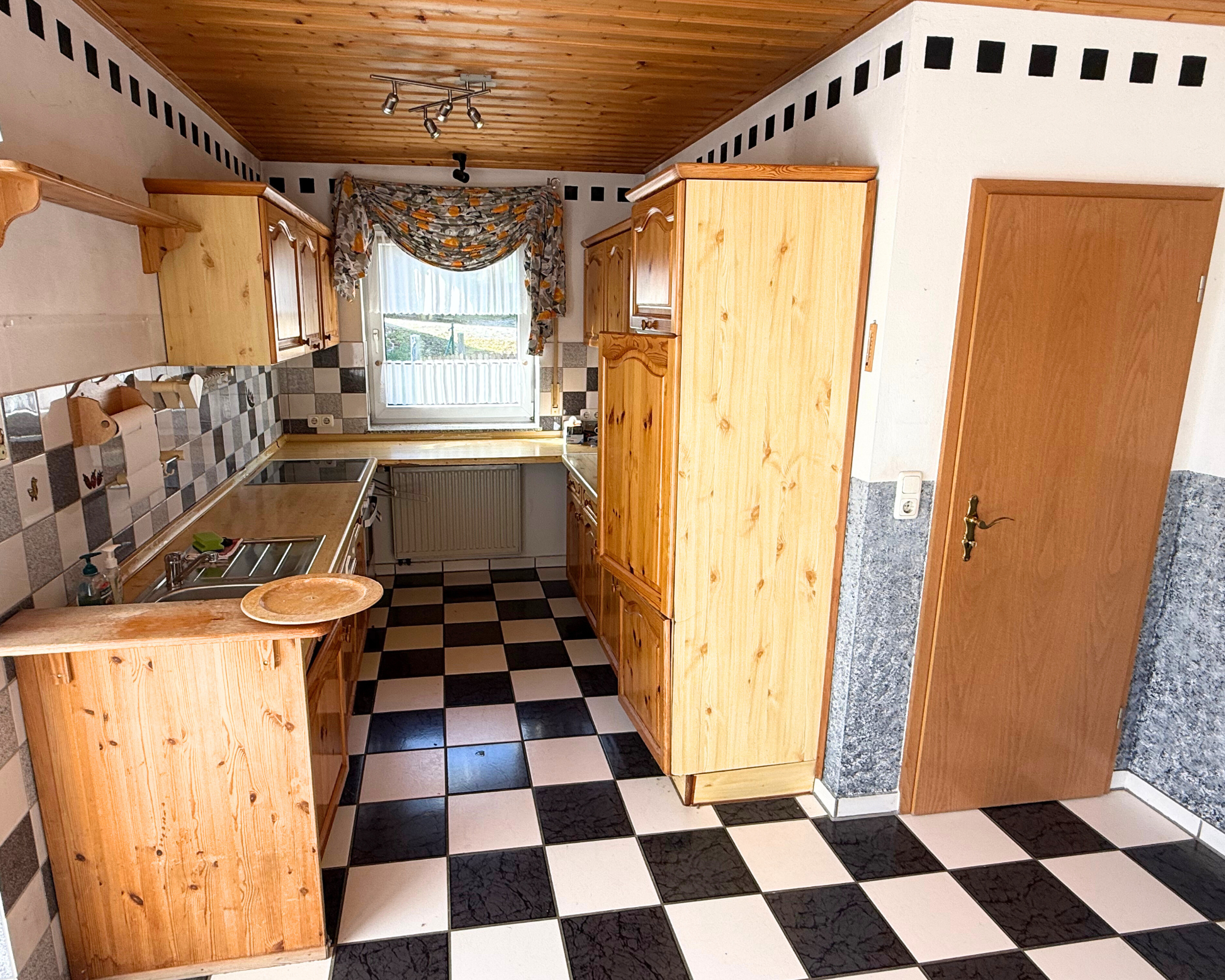 Die Einbauküche ist bereits vorhanden und kann direkt genutzt werden. Doppelverglaste Fenster mit Rollläden sorgen für eine angenehme Wohnatmosphäre und Schutz vor neugierigen Blicken. Die Böden sind mit Fliesen und Teppichboden ausgestattet, was dem Haus einen wohnlichen Charakter verleiht.